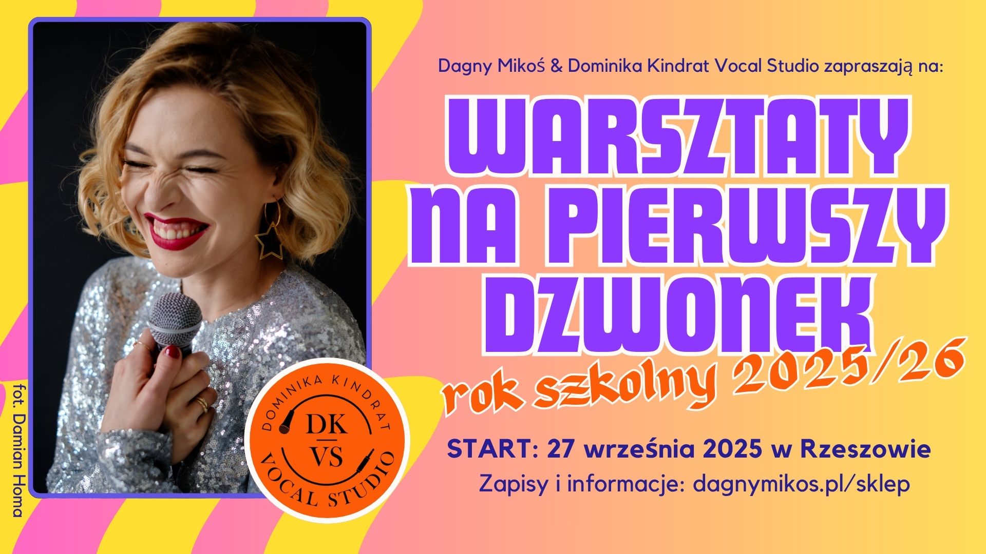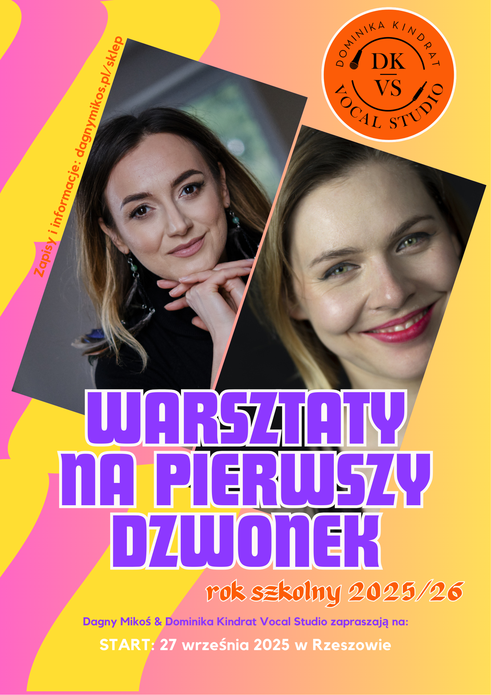 Wraz z Dominika Kindrat Vocal Studio, zapraszamy wszystkich chętnych na CYKL WARSZTATÓW TWÓRCZYCH NA ŻYWO, które odbędą się w pierwszym semestrze roku szkolnego 2025/2026. Cykl warsztatów składa się z 4 spotkań, które odbędą się: 27 września, 25 października, 29 listopada oraz 13 grudnia 2025 roku w Rzeszowie. (Cykl będzie kontynuowany również w drugim semestrze, a dokładny plan i terminy warsztatów pojawią się w okolicach grudnia br.)